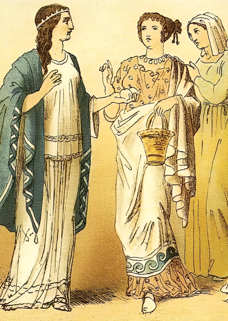 Кроме того, даже бедные женщины в Риме старались украсить свои туники вышивкой, яркой каймой и другими украшениями, в то время как рабыни носили одежду без всяких украшений.