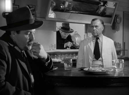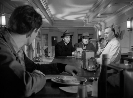 Ещё более абстрактным и холодным образ убийцы предстает в «Убийцы» (1946) Роберта Сиодмака. Двое незнакомцев приезжают в маленький город, чтобы ликвидировать бывшего боксера, известного как Швед. Сцена в закусочной, где они медленно, безэмоционально разговаривают с официантом и ждут жертву, производит эффект абсолютного ужаса именно своей обыденностью. Их лица остаются в тени, а движения — механическими. Как писал Ян Конрич в статье Mass media/mass murder, «нуар делал убийство не событием, а состоянием — оно могло в любой момент войти в жизнь персонажей».