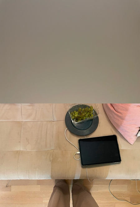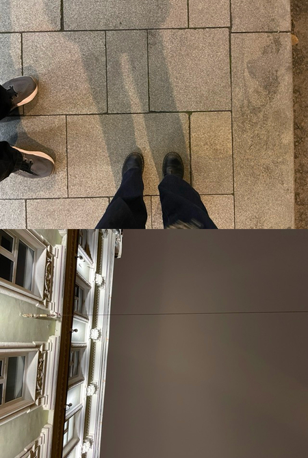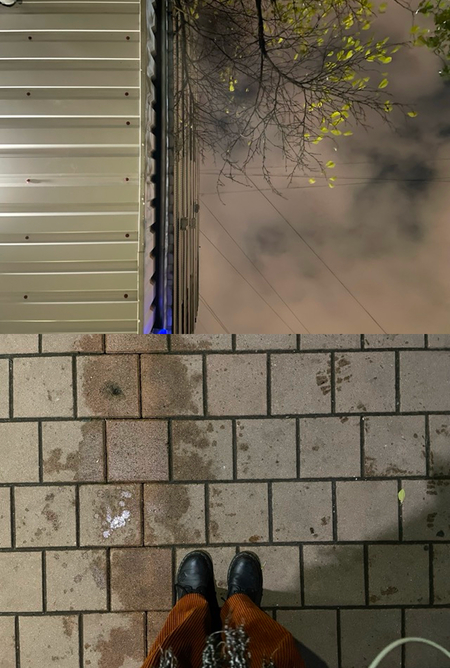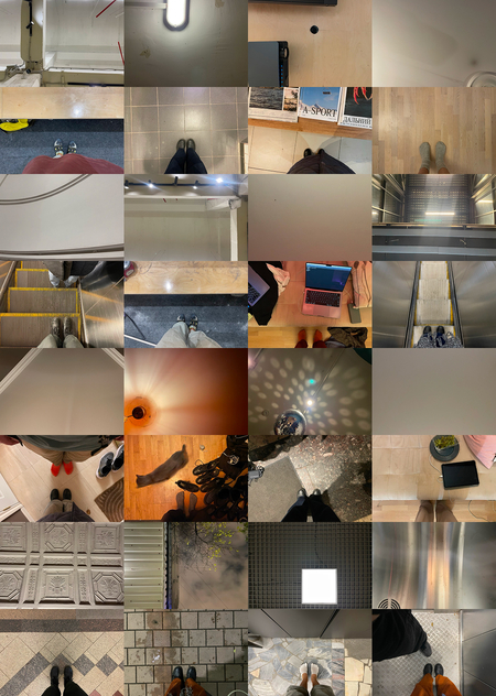 Серия «20:00» — это попытка осмыслить повседневность с помощью строгих рамок. В течение семнадцати дней каждый вечер в 20:00 я делала по два снимка: пол под ногами и потолок над головой. Семнадцать пар изображений формируют визуальный дневник, фиксируя отрывки повседневности.