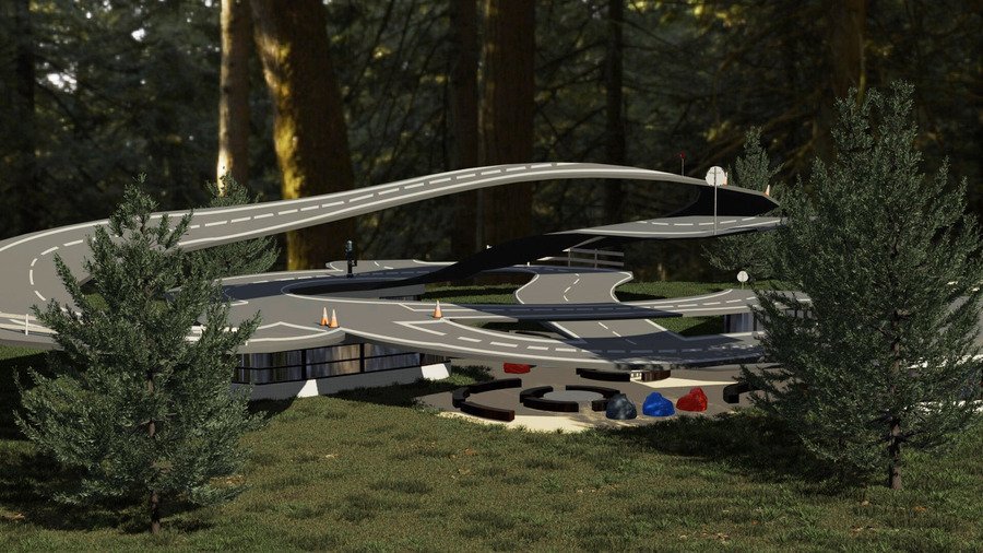 Школа скрыта от чужих глаз в глухом хвойном лесу Линдуловской рощи. Пространством автошколы является комплекс, состоящий из открытых зон и помещений, накрытых извилистой тренировочной трассой.