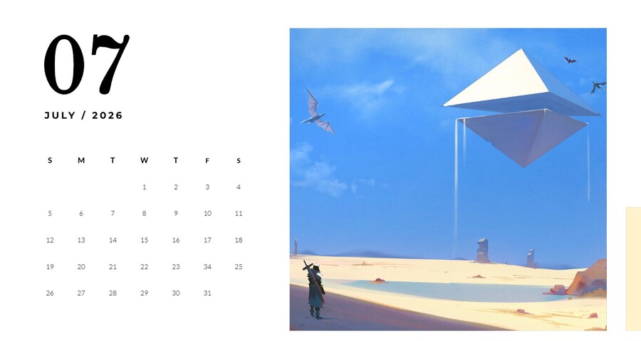 This is a series of 13 illustrations showcasing the wonders of my fictional world: Eland. Eland hosts 08 countries and a number of dangerous zones called the Null Zones. The illustrations are gathered in a delicate calendar. If you happen to be stuck in this world, be sure to follow the guide and visit the most beautiful places on Eland, but be wary of the dangers lurking.