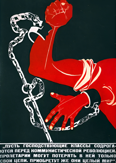 На примере обложки 1930 года, противопоставление — женщина в религиозном рабстве и после, работающая в яслях.