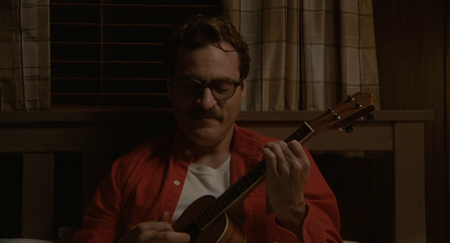 Мир фильма представляет недалекое будущее, но изображенное в максимально комфортном, близком и оптимистичном виде. Мы не видим холодной металлической эстетики и необычной одежды, обычно присущих научной фантастике, мир выглядит теплым, понятным, местами даже нарочито наивным, что соответствует внутреннему миру главного героя Теодора.