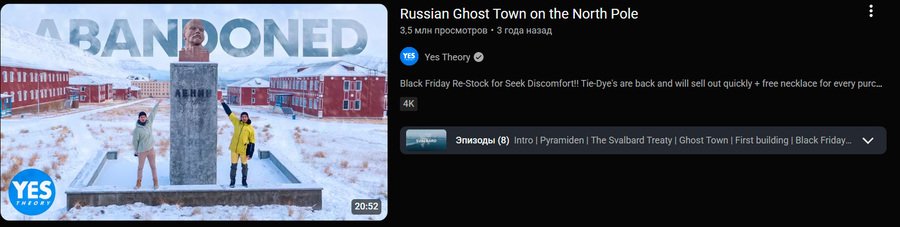 «Я хочу посетить место в России, которое я увидел по телевизору ещё давно. Изначально там были люди из-за влияния Советского Союза, но теперь там никого нет, и я думаю, что въезд туда сейчас ограничен, показанные руины были целы и здания были заморожены вместе со снегом».