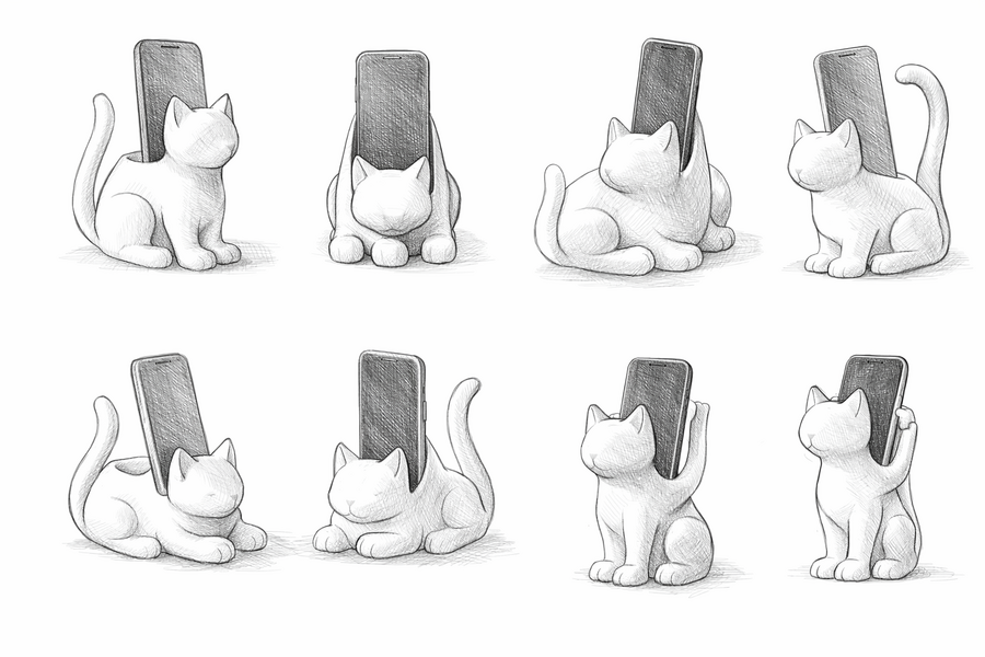 Проект представляет собой серию функциональных и декоративных подставок для телефона в виде кошек. Каждая подставка представляет уникальную позу кошки: сидящая, лежащая, вытягивающая лапу и др. Серия рассчитана на любителей животных, дизайнерские интерьеры и молодежную аудиторию.