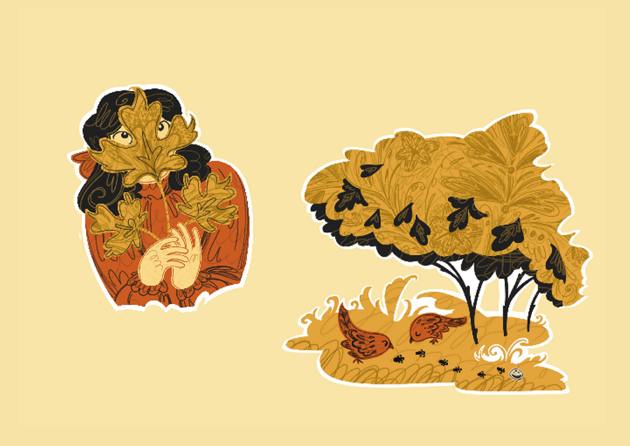 Из густых зарослей на вас выглядывает череда героев из разных эпох. Одни погружены в собственные дела, другие внимательно приглядыватся и ожидают реакции, но всех объединяет одно: мы никогда не узнаем о них больше того, что виднеется из-за веток.