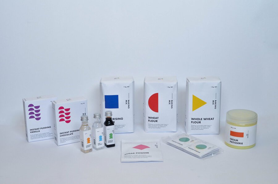 Пример брендинга для бренда выпечки в стиле Баухаус