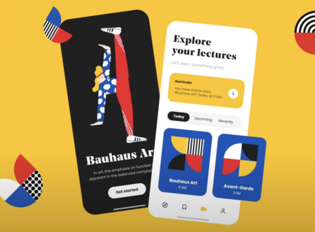 Примеры интерфейсов с цветовыми решениями в стиле Баухаус