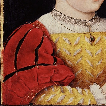 В этих фрагментах особенно хорошо видно, как Жан Клуэ работает с тканью и орнаментом.