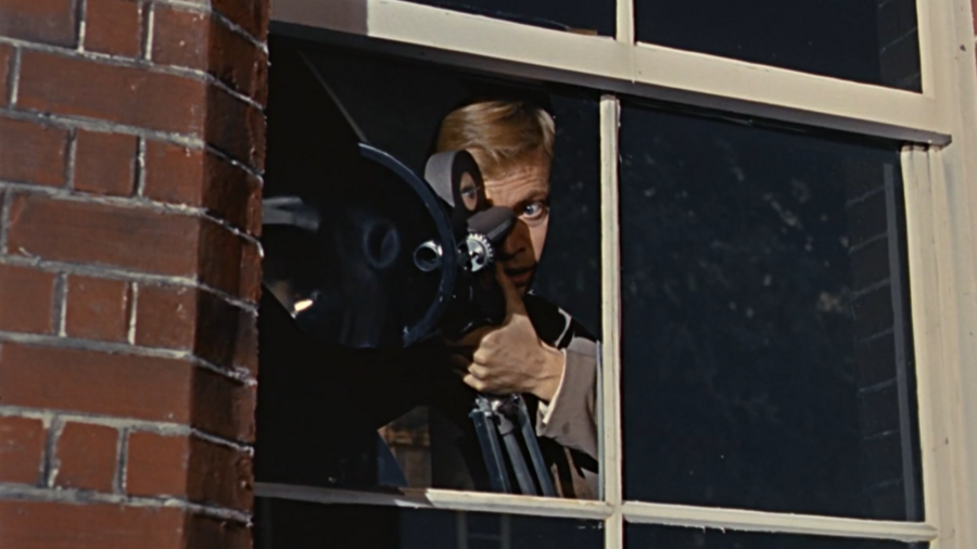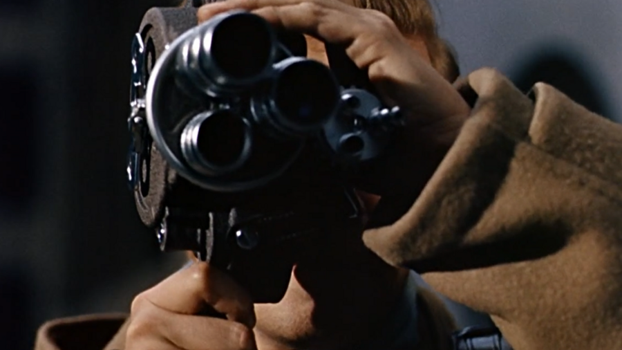 Сцены из фильма Peeping Tom (1960), М. Пауэлл Герой снимает мир на свою камеру, следит.