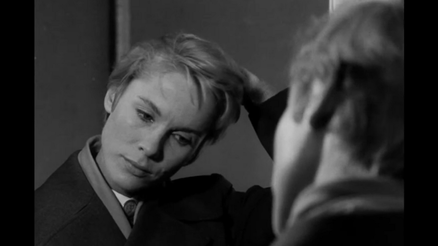 Проекционное изображение накладывается на реальное лицо, создавая эффект раздвоенного субъекта. Бергман буквально показывает процесс разрушения границы между внутренним и внешним. Экран не показывает реальность — он навязывает новую идентичность, которая начинает поглощать героиню.