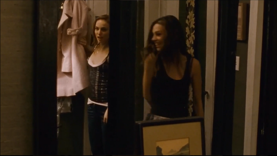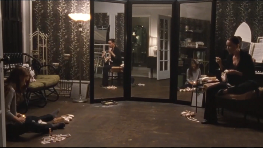 Фильм перенасыщен зеркалами: они есть в зале для репетиций, изобилуют дома у главнйо героини. Иногда они широкие и большие, а иногда ломаются по форме и ломают отражение внутри. Они — большие экраны, которые передают состояние героев.