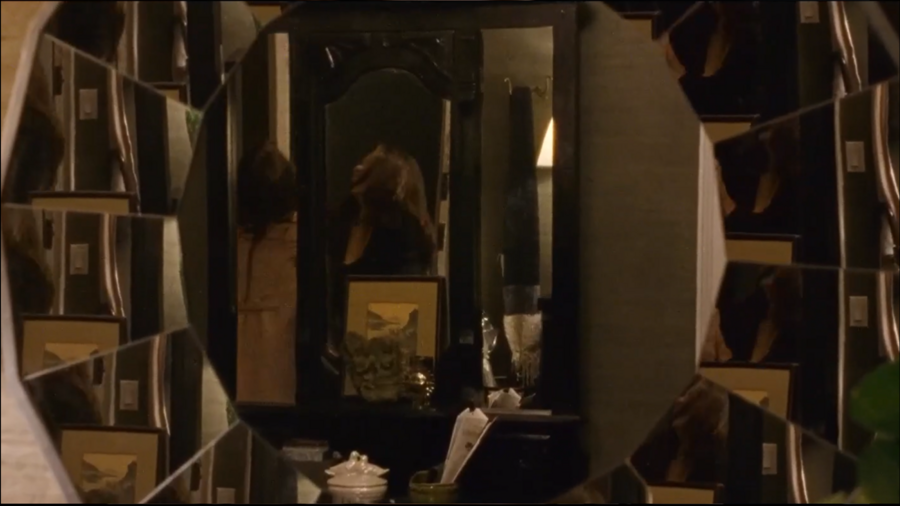 В фильме Black Swan в момент, когда отражение Нины начинает жить собственной жизнью, зеркало превращается в экран, создающий альтернативное «я». Отражённая фигура не повторяет движения реальной героини, а действует с явным запозданием — как самостоятельный персонаж. Кадр строится так, что зритель вынужден смотреть на отражение, а не на оригинал, что смещает центр субъективности. Визуальный разрыв между телом и его медиальным двойником превращает зеркало в инструмент захвата идентичности: экранная версия стремительно становится более подвижной, сильной и агрессивной, чем реальная.