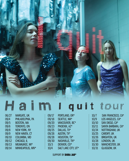 Как и в случае с обложкой предыдущего студийного альбома, обложку четвертого альбома Haim «I Quit» снова снял американский режиссер Пол Томас Андерсон. Визуально обложка и материалы, выпущенные к альбому становятся более холодными, а неоновые надписи усиливают это ощущение.
