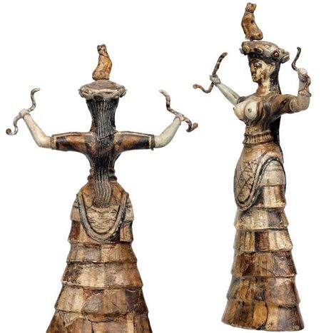 Богиня со змеями, Фаянсовая статуэтка из Кносского дворца, XVII век до н. э.