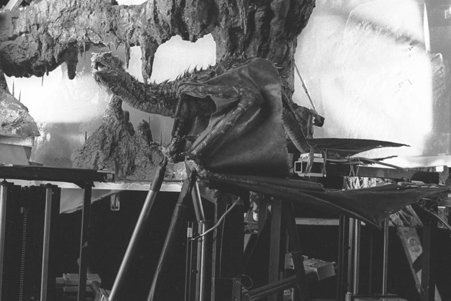 В процессе работы с этим эффектным, но массивным реквизитом своевременно возникли сложности. Деннис Мерен из ILM рассказывает, что проблема заключалась в том, что операторы были «скорее техниками, чем кукловодами», что в итоге отразилось в движениях дракона.