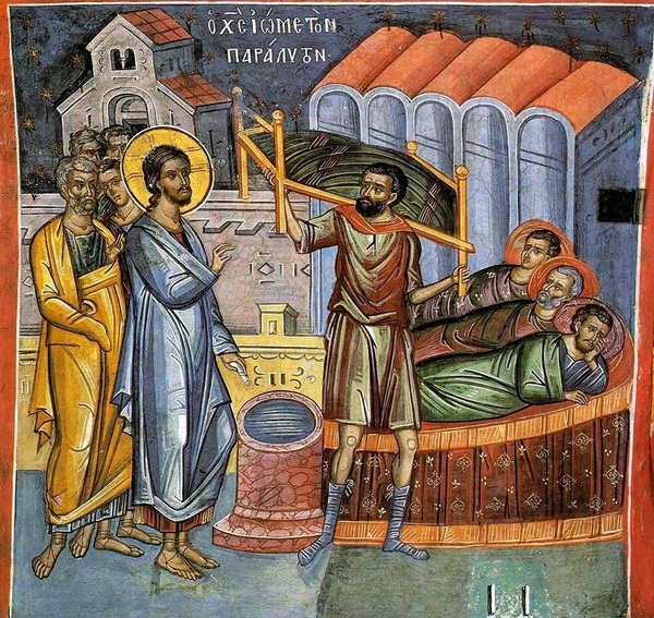 Автор — неизвестен, «Исцеление расслабленного в Капернауме», примерно 1350 г.