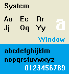 Спесимены шрифтов System (1985) и Microsoft Sans Serif (1987) от Microsoft