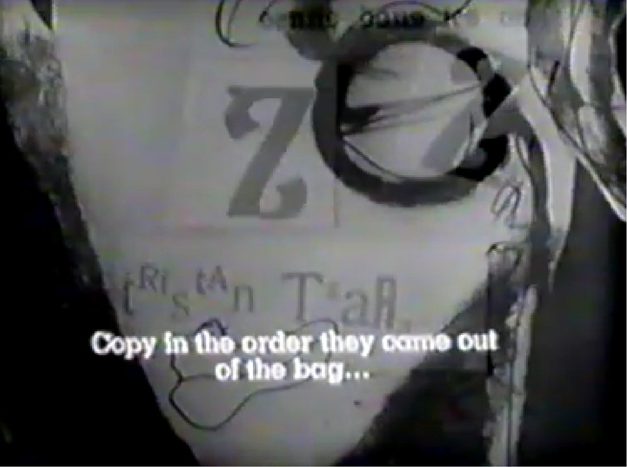 На видео Тристан Тцара озвучивает инструкцию по созданию поэмы Дада: