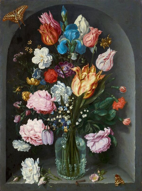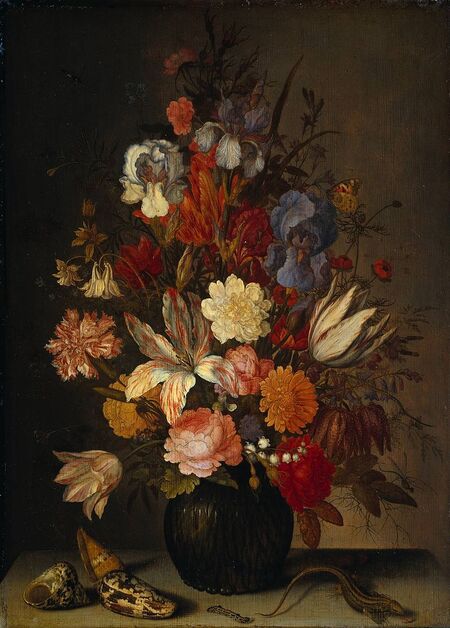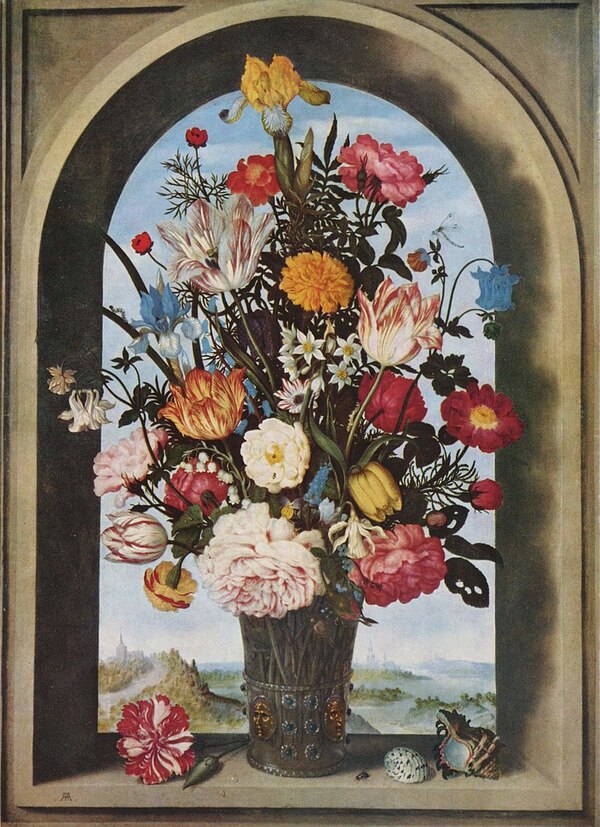Амброзиус Босхарт Старший считается одним из родоначальников голландского цветочного натюрморта. Его букеты отличаются симметрией и тщательно отобранными цветами: розы, тюльпаны, лилии, мальва и др.