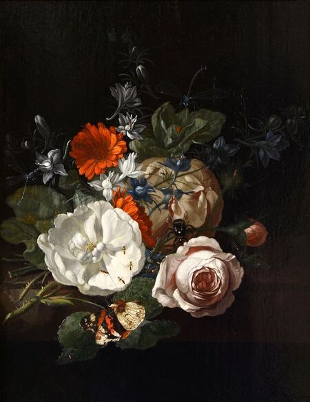 Позаимствовав у предшественников идеи vanitas, Рюйш включала в букеты бабочек, стрекоз и гусениц.