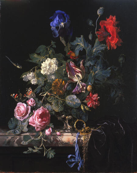 Цветочные натюрморты XVII века были не просто демонстрацией мастерства и богатства. Каждый цветок и каждое насекомое в них несёт свой подтекст. «Лилия традиционно символизировала чистоту — образ Богоматери, роза — любовь и красоту, тюльпан — символ удачи. Уроненные лепестки и вездесущие паутинки — метафора бренности. Часы, черепа и увядшие цветы напоминают о том, что прекраснейшие мгновенно увядают» [4]. Вместе эти элементы формируют богатую смысловую ткань картин. Как подчёркивают современные кураторы, голландские цветы были «частью частного быта» [4] элиты того времени.