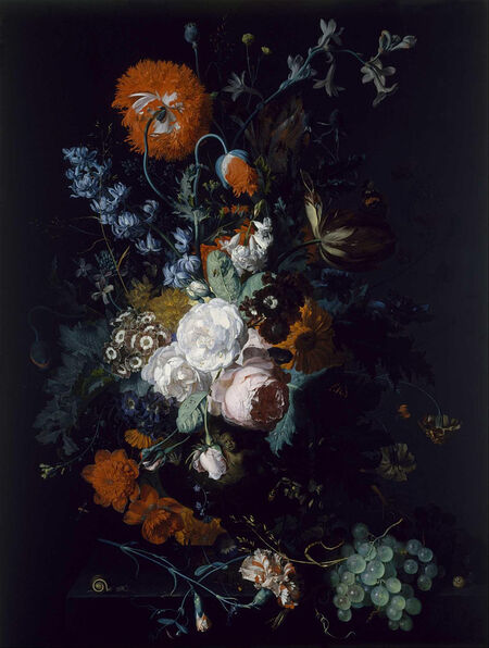 Ян ван Хёйсум был современником Рюйш, перенял от неё идею объединения цветов разных сезонов. В одном букете он может представить распустившуюся розу, подсыхающую мальву и жатый колос. Отличительной чертой ван Хёйсума стали насыщенные светлые тона и плавные переходы между цветами. Благодаря его технике картина словно светится изнутри. При этом всё так же видны капельки росы и опавшие листья.