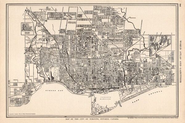 Вид сверху на Торонто, Канада / Антикварная карта улиц Торонто, Канада, 1923 г.