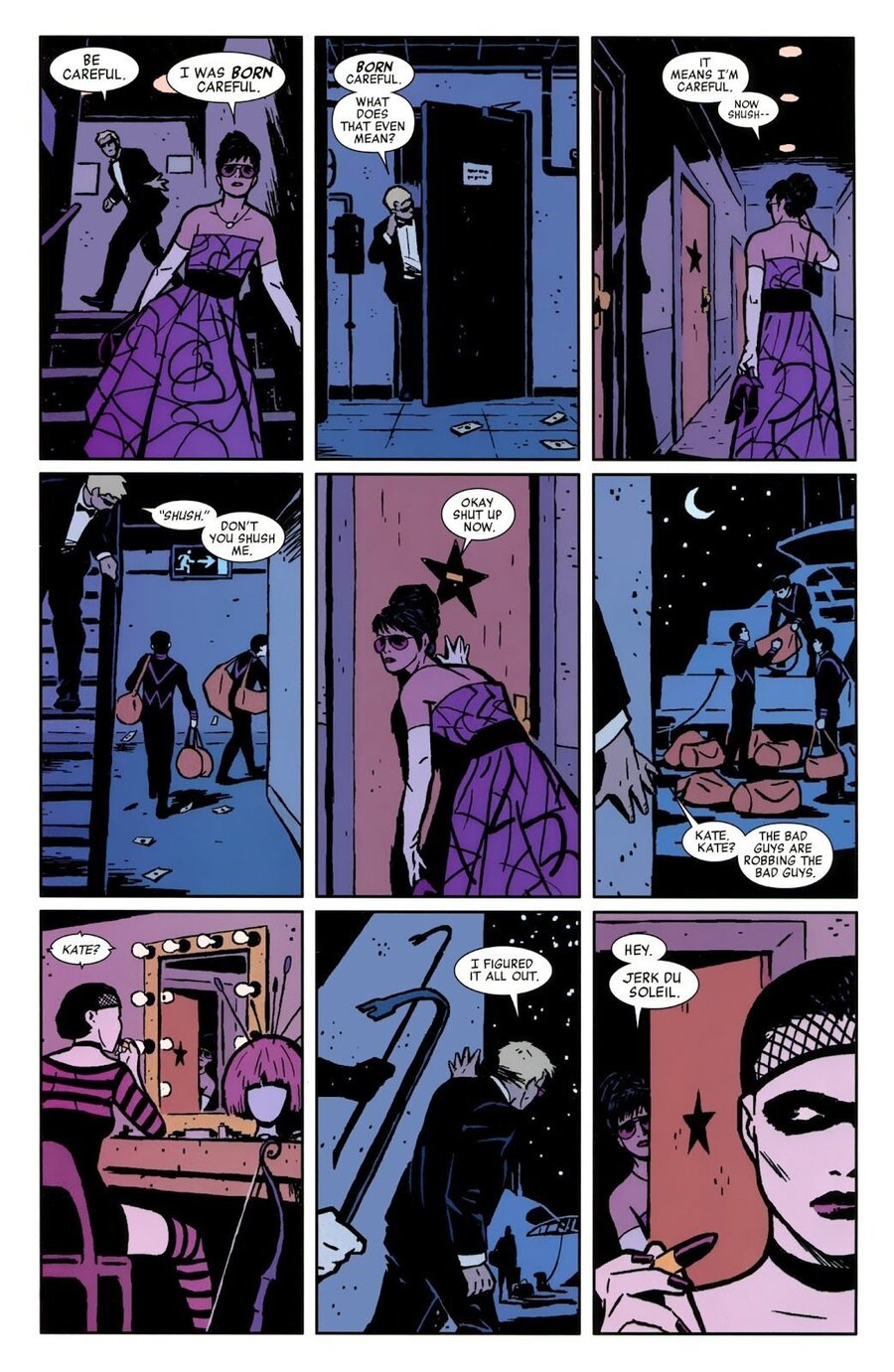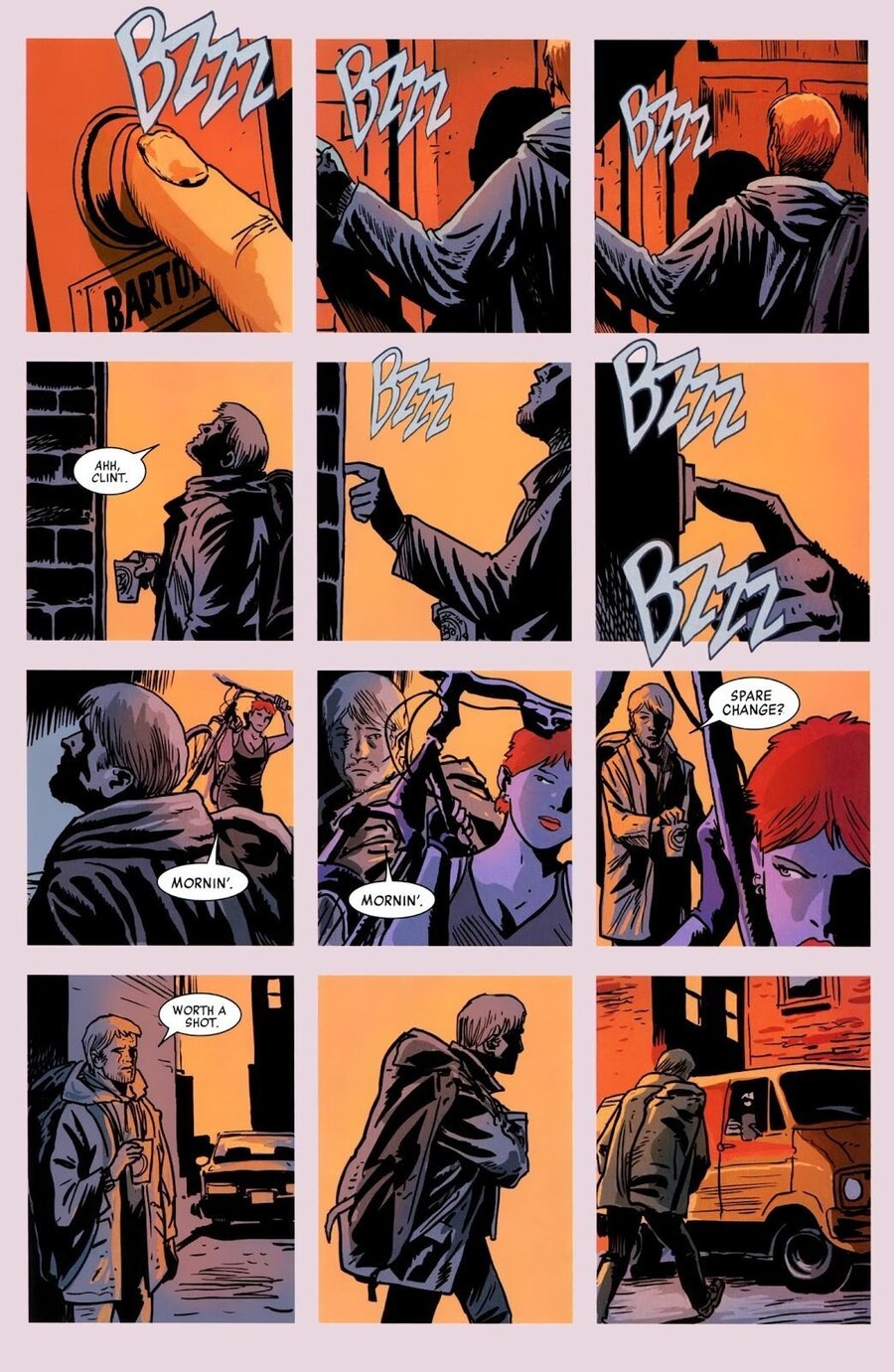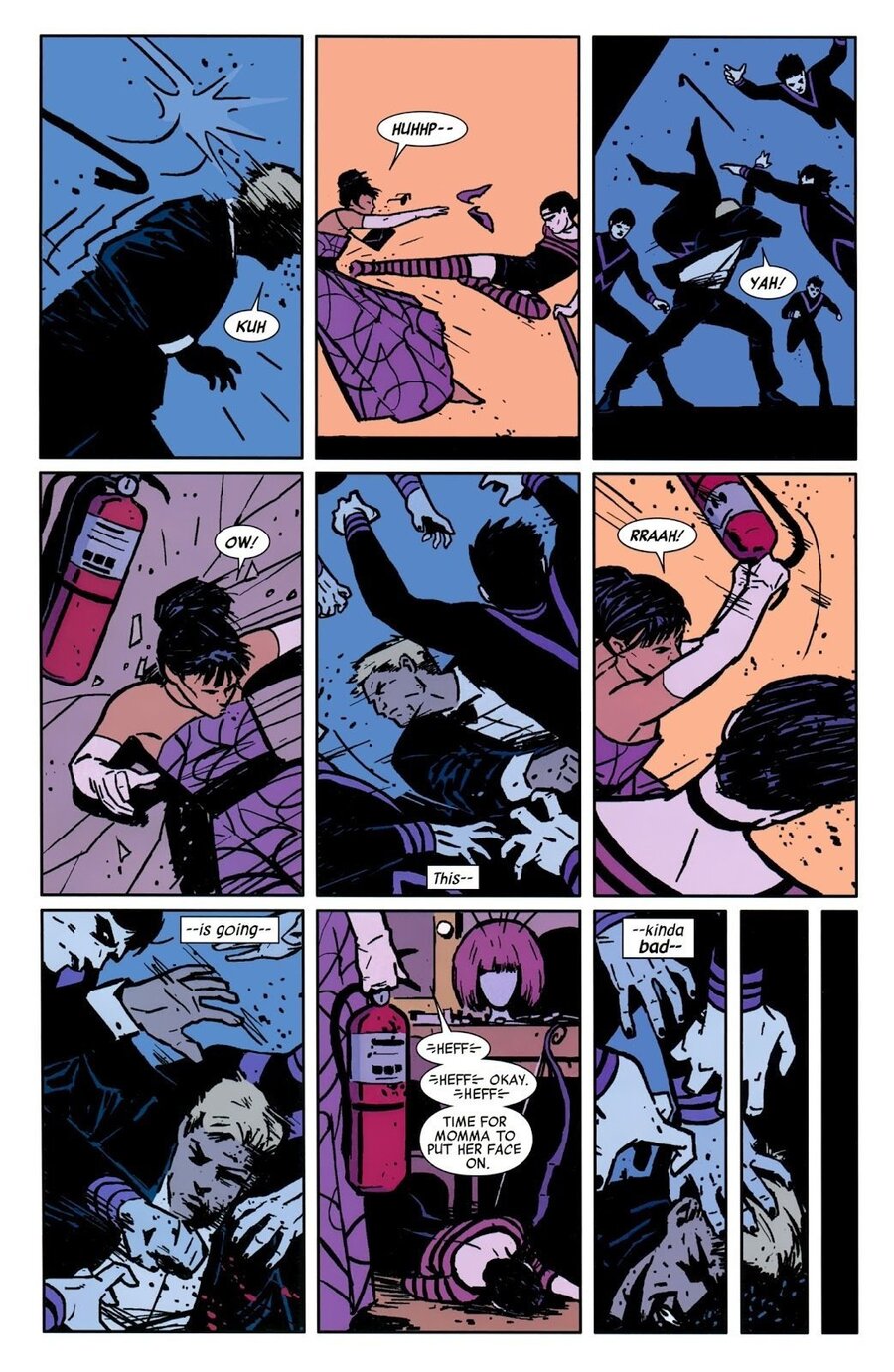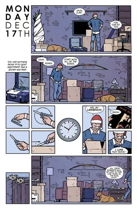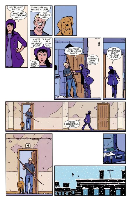Hawkeye Issue #12. Решил добавить половину главы, чтобы было наглядно видно, как автор работает с сеткой и динамикой
