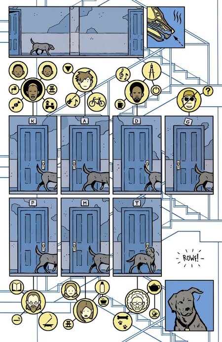 Такой подход делает Hawkeye ближе к дизайнерским публикациям: к журналу, к инфографике, к аккуратно собранному визуальному материалу. Важны сетка, блоки, ограниченная палитра, повторяемость. Из этого складывается язык, в котором каждое действие воспринимается не через эффектность, а через последовательность. Это задаёт другой темп чтения — без резких скачков и лишнего драматизма. Благодаря этому раскрывается сам персонаж: Соколиный глаз здесь — не герой, а обычный человек, у которого всё держится на небольших решениях и бытовых моментах. Этот эффект создаётся именно визуальной системой, потому что она не отвлекает, а помогает видеть характер.