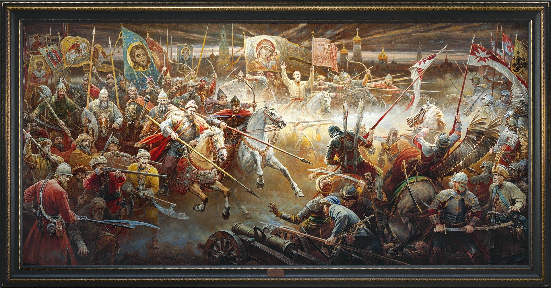 Василий Нестеренко — народный художник РФ, академик РАХ. Его работы — это визуальное воплощение идеологии и величия. Приобрёл известность благодаря полотнами на темы русской истории и христианской религиозности. Для анализа возьмём его работу «Избавление от Смуты» 2012 года.