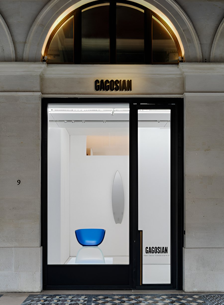 Галерея Gagosian, хотя преимущественно работает с искусством, вводит предметы дизайна (например, предметы мебели Марка Ньюсона, Фрэнка Гэри, Жана Пруве) через ту же стратегию: дизайн превращается в скульптурный объект. Такое представление создает дистанцию между зрителем и вещью, формируя восприятие объекта как произведения искусства.