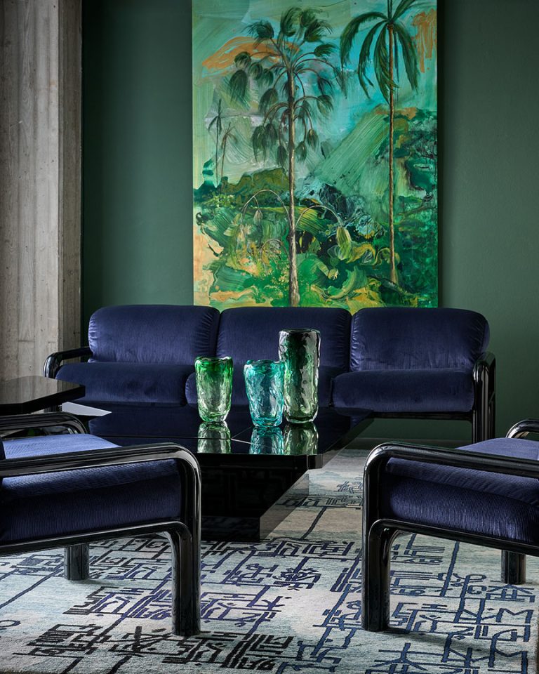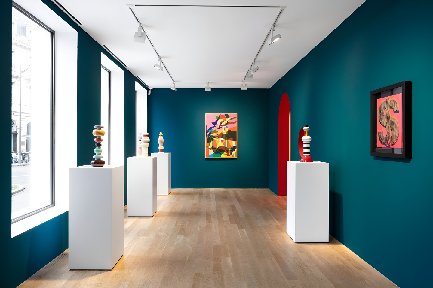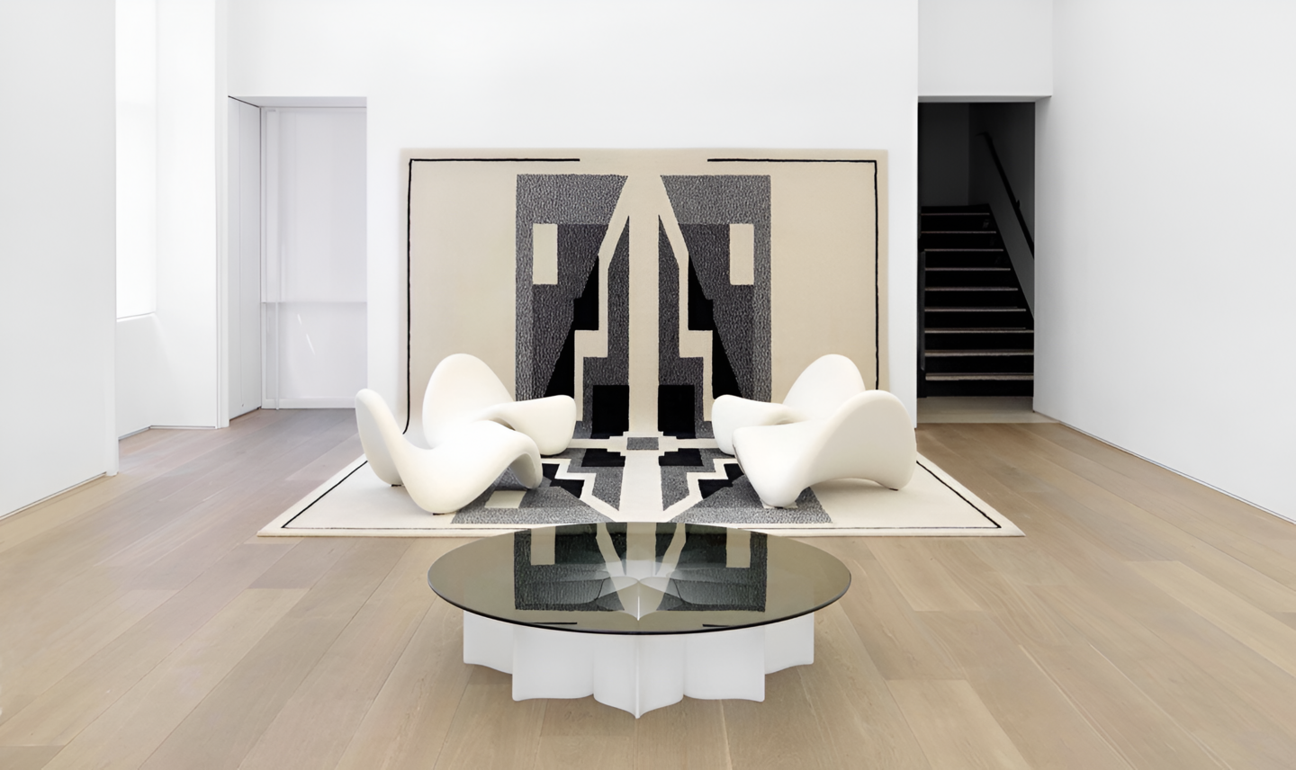 Nilufar Gallery развивает противоположную «белому кубу» модель: объект существует внутри богатой, многослойной интерьерной композиции. Нина Яшар, основательница галереи, строит экспозиции как кураторские пространства обитания.