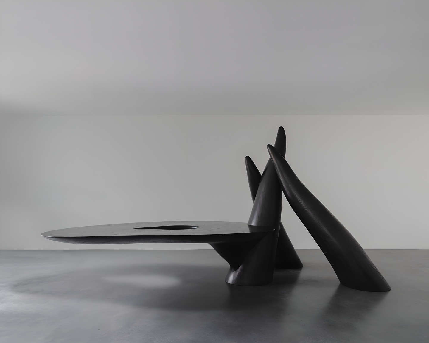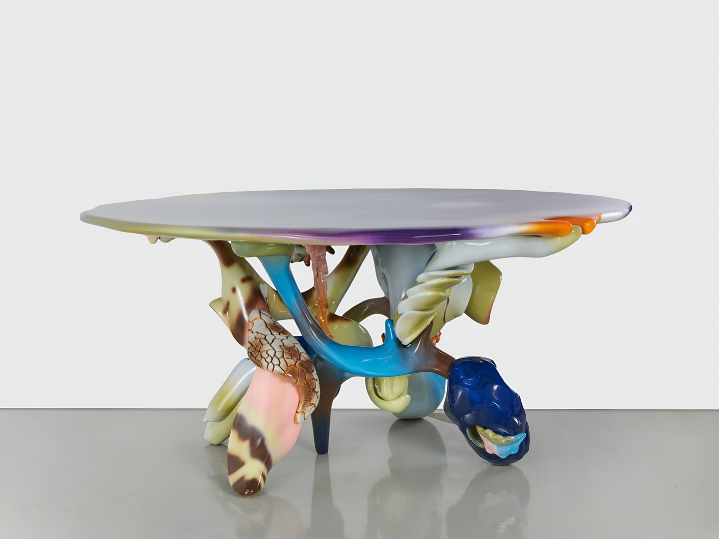 Стол Euphausiids Delight (Final Moments), Миша Кан, 2020; Скульптура Occupying The Margins Of The Page, Миша Кан, 2022. Friedman Benda