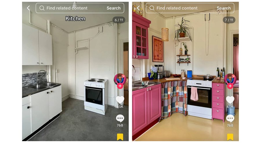 Before and after of a rental apartment, Content creator Hanna KL, 2024