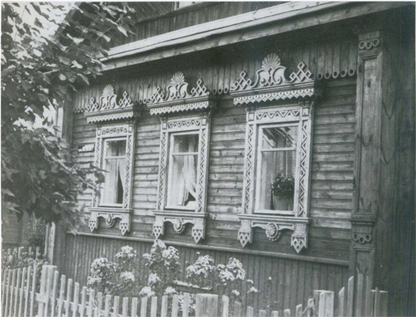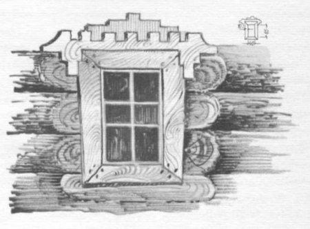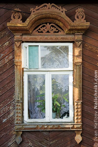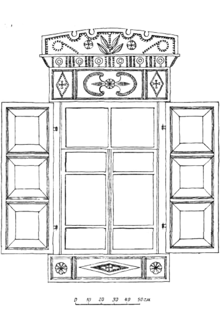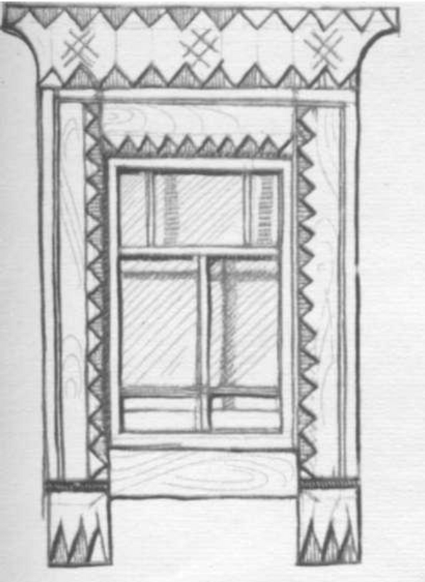 Боковые стойки наличников украшались вертикальным орнаментом, будь то вьющиеся растения, плетенка или цепочки ромбов, и всегда оставались симметричны по центральной оси. Подоконная доска завершала композицию.