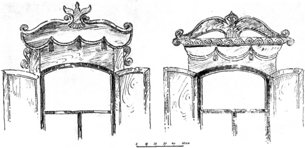 Сандрик всё чаще стали украшать вазоны, являющиеся стилизованными изображениями античной вазы с произрастающими из них растениями, формирующими замысловатый узор.