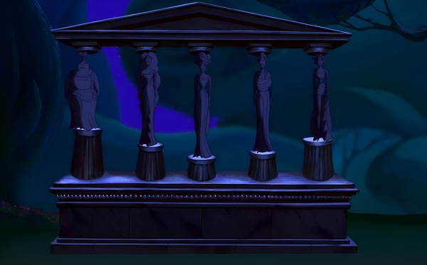 В мультфильме «Геркулес» 1997 года можно заметить отсылку к древнегреческим кариатидам, которые представляют собой скульптурные изображения женщин, выполняющие функцию колонн. Хотя этот образ не совсем достоверен и отличается от оригинала, он все же отражает дух и стиль Древней Греции.