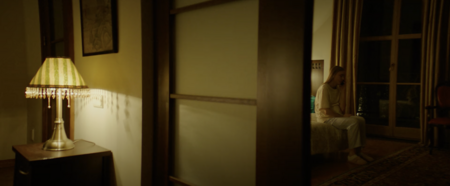 В «Контейнере» кадры наоборот компактны и тесны: узкие коридоры, низкие потолки, маленькие комнаты. Героиню часто снимают через дверной проём или из-за плеча — зритель наблюдает, но не может приблизиться. Такой «частичный взгляд» создаёт дистанцию: персонаж будто существует вне общего мира.