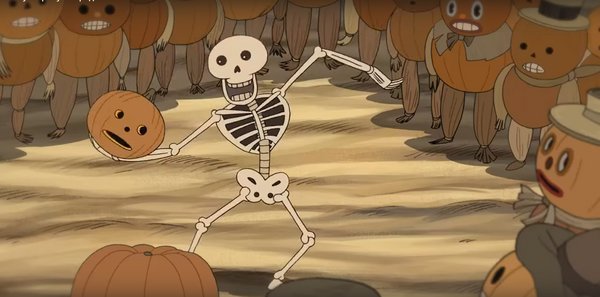 Пляска смерти — аллегорический сюжет, повествующий о бренности бытия. Встречается на средневековых миниатюрах XIV–XVI века. «…персонифицированная Смерть ведёт к могиле пляшущих представителей всех слоёв общества — знать, духовенство, купцов, крестьян, мужчин, женщин, детей». Тоже самое происходит и в пространстве мультфильма: герои забредают в городок жителями которого оказываются мертвецы. Грегу и Вирту за всё время путешествия по Неизведанному не раз задают экзистенциальные вопросы, затрагивая тему смерти.