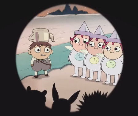 В средневековой миниатюре не редко встречаются образы пилигримов. На протяжении всего мультсериала герои находятся в пути, им нужно по-скорее выбраться из леса и вернуться домой. Братья, подобно паломникам, совершают путешествие, главной целью которого является спасение души.