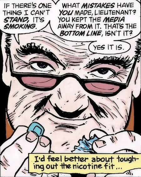 Привычка комиссара Джиллиана Б.Лоэба использовать эвкалиптовые леденцы от кашля в «Batman: Year One» может являться большим, чем просто небольшая деталь; это тонкий, но эффективным символ институциональной коррупции, которая определяет Готэм. Резкий, лекарственный запах леденцов как бы перекрывает моральное разложение Лоэба как личности, подчеркивая разрыв между его респектабельной публичной персоной и его тайными союзами с организованной преступностью. Так же, как леденцы от кашля лишь успокаивают симптомы, не излечивая основную болезнь, перформативная «чистота» Лоэба маскирует более глубокие системные недостатки в работе GCPD.