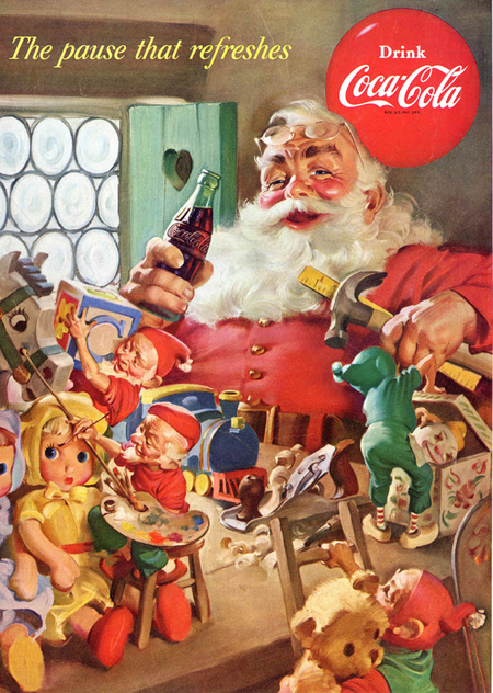 Со временем Санта превратился из волшебного дарителя в друга — он пьет колу, отдыхает, стал ближе к людям [4].