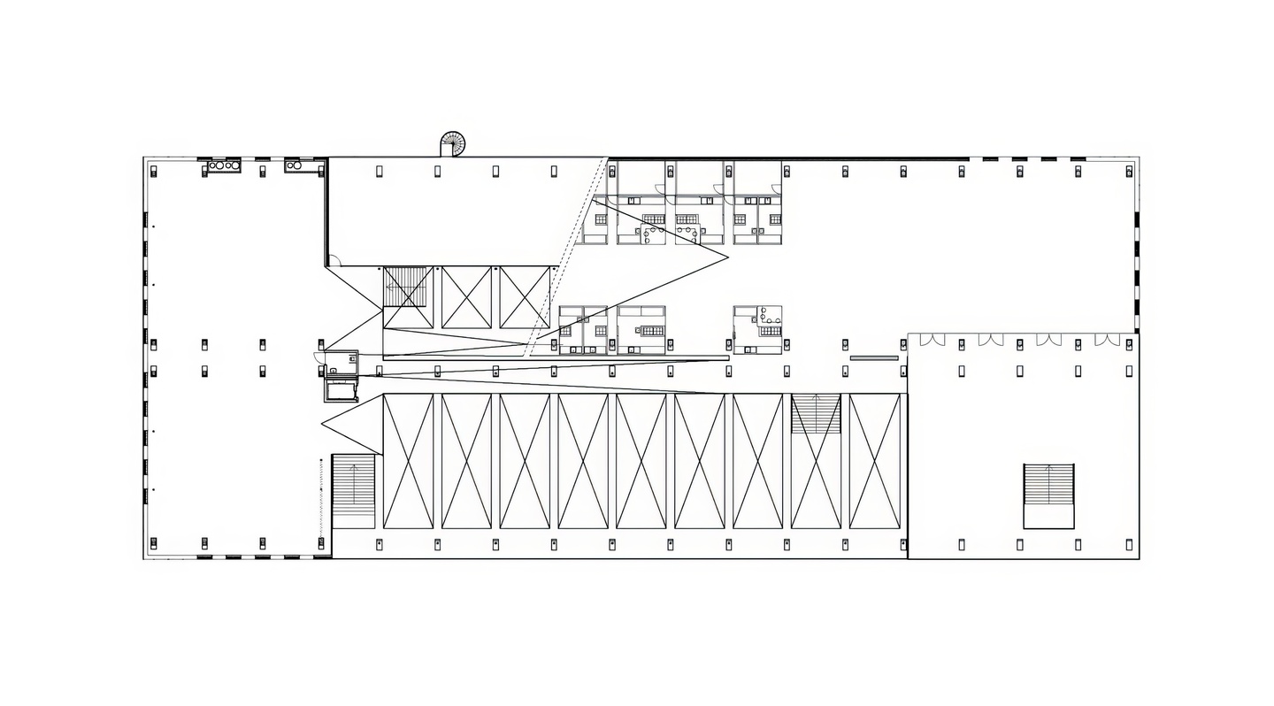 Из-за этого архитекторы проводили лишь минимальные вмешательства при реновации пространства, чтобы сохранить главные конструктивные элементы — высокие потолки на стальных фермах, сами старые фермы и прочную индустриальную структуру здания в целом. Однако для более получения более естественного освещения в стены были вставлены большие застекленные гаражные створки.