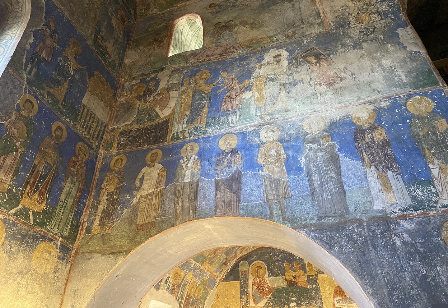Фрески собора Мирожского монастыря в Пскове XII-ого века и фрески церквей бывших византийских земель в Герёме IX–XI-ых веков.