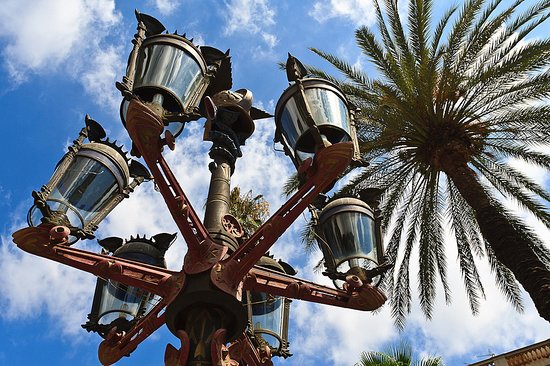 Уличные фонари Plaça Reial, Антонио Гауди, 1879 г., Барселона, Испания.