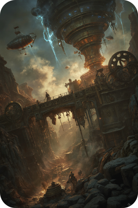 Гигантская трещина в планете, в глубине которой работают циклопические механизмы. По мостам над пропастью движутся караваны, а под ними вращаются шестерни, каждая размером с дирижабль. Атмосфера: опасность, движение, огонь и пар. Функция: рискованная добыча редких ресурсов.