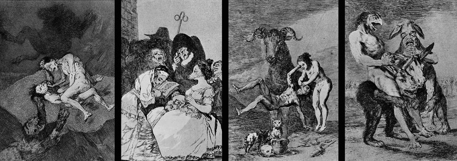 Бялостоцкий (Bialostocki) писал, что «Гойя дал жизнь оригинальной иконосфере, в которой классические божества смешиваются с мотивами, происходящими из народной мифологии; где элементы испанской повседневной реальности — навязчивой, жестокой и едва переносимой — сочетаются с баснями, пословицами и символами эмблематического происхождения. Логическое качество, усиленное рационализмом эпохи Просвещения, проникло в воображение Гойи и заставило фантастических монстров, которых оно порождает, предстать перед нами в полной реальности своего существования. Существует фундаментальное различие между монстрами позднего Средневековья и искусственными монструозными структурами Босха, с одной стороны, и живым и ужасным монстром Гойи, факт, который уже подчёркивал Бодлер» [5]
