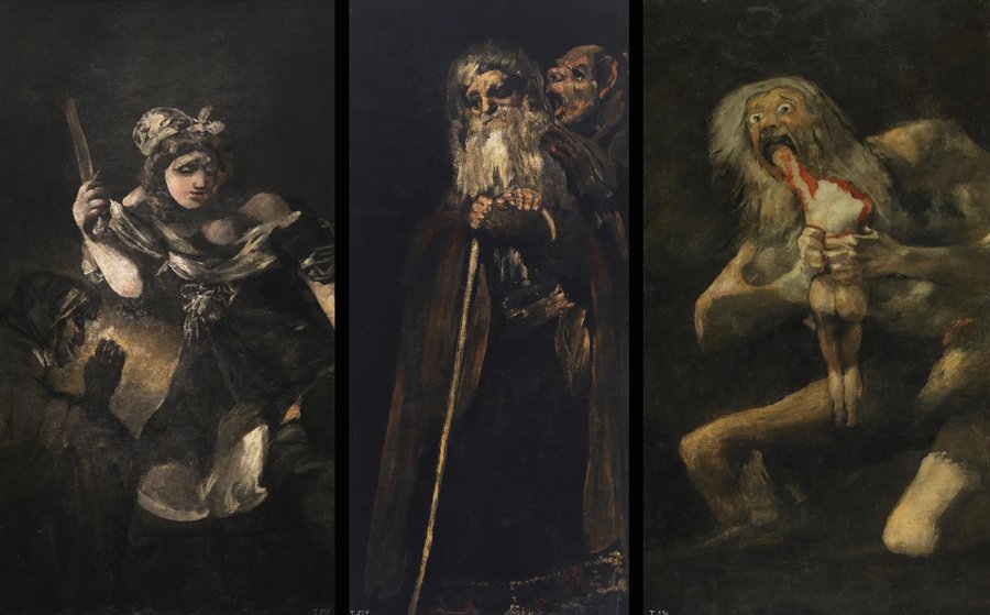 Несмотря на мифологическую основу, картина рождает архетипический образ всепоглощающего Хаоса, Безумия, Времени, что уничтожает собственное творение.
