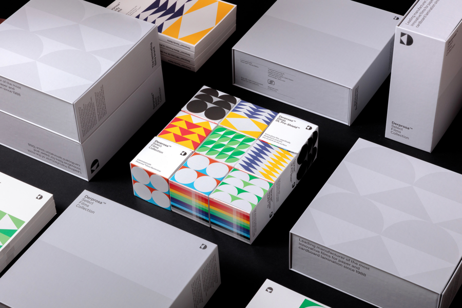 Следующий проект, который затрагивает геометрическую сущность баухауса и является воплощением принципа следования формы за функцией, это ребрендинг от испанского дизайн агентства Plácida для компании Derprosa™ — производителя ламинационных пленок для коммерческой печати и изготовления упаковки.
